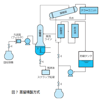 蒸留再生方式は簡易蒸留再生と蒸留塔による蒸留精製の2方式があります。